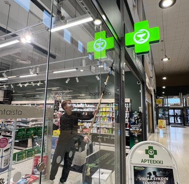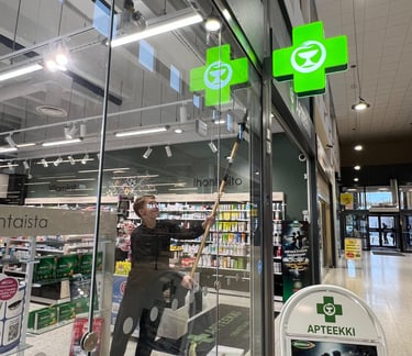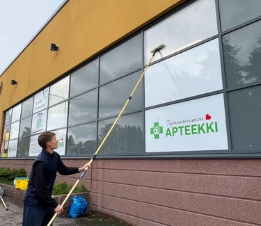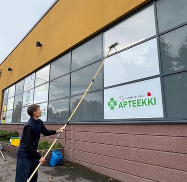Palvelumme kattavat liiketilojen sisä- ja ulkopesut sekä säännölliset ylläpitopesut.